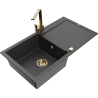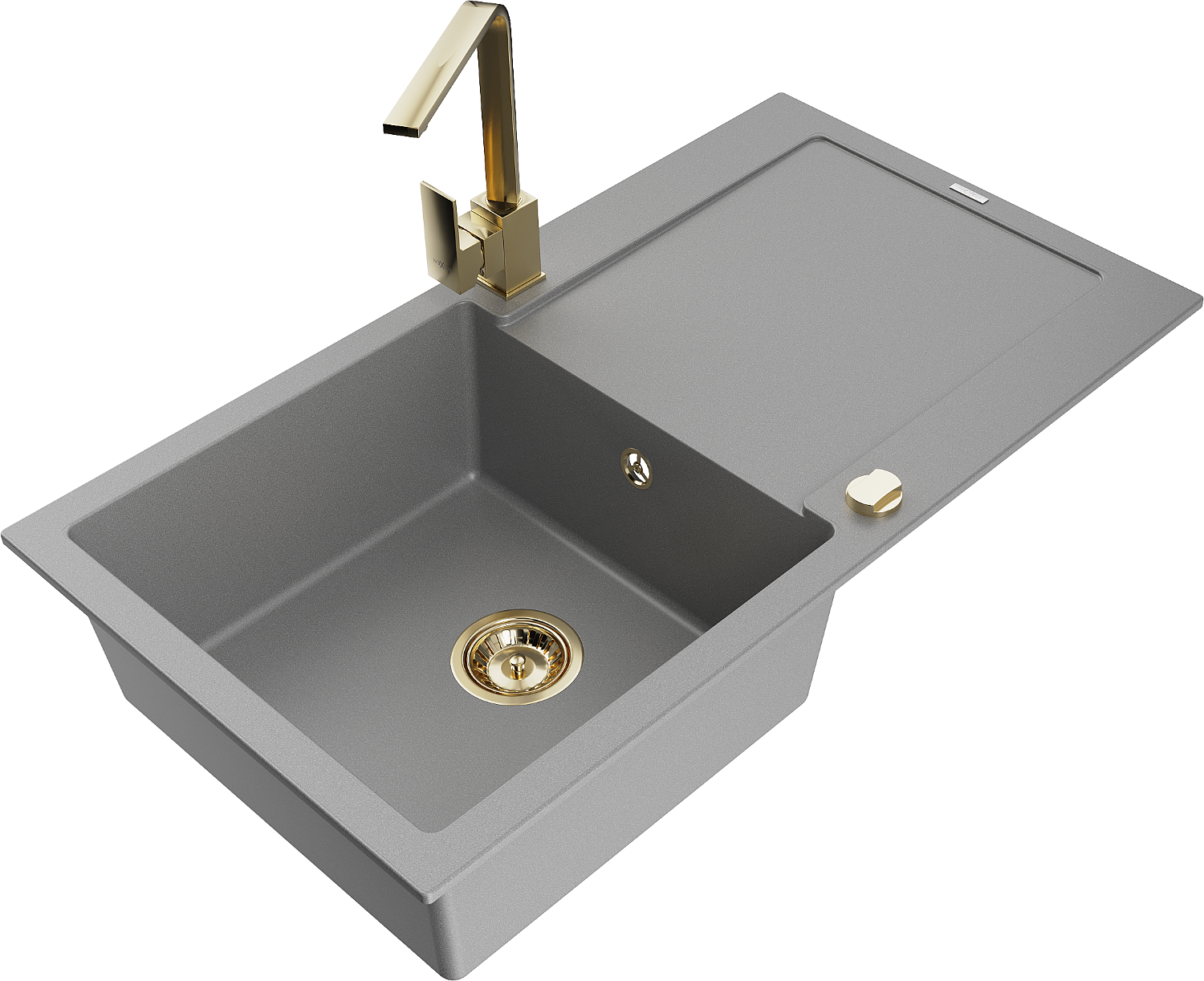 Mexen Leo 1-bowl granite sink with drainer and Rita kitchen tap, grey - 6501-71-670300-50