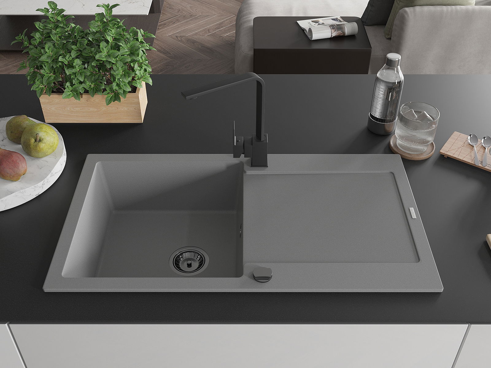 The surface of the sink is resistant to stains and discoloration, thanks to which it is easy to clean and retains its color for a long time. Aesthetic and practically complementing every kitchen.