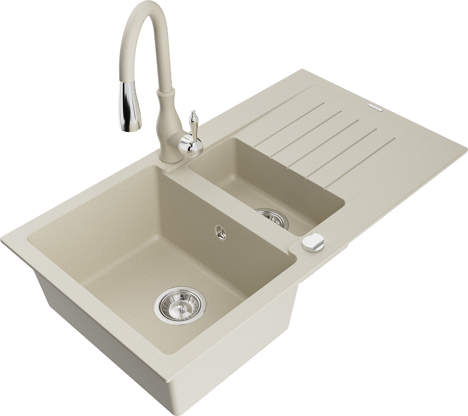 Mexen Matias granite sink 1.5-bowl with drainer and kitchen tap Savita, beige - 6502-69-672601-69