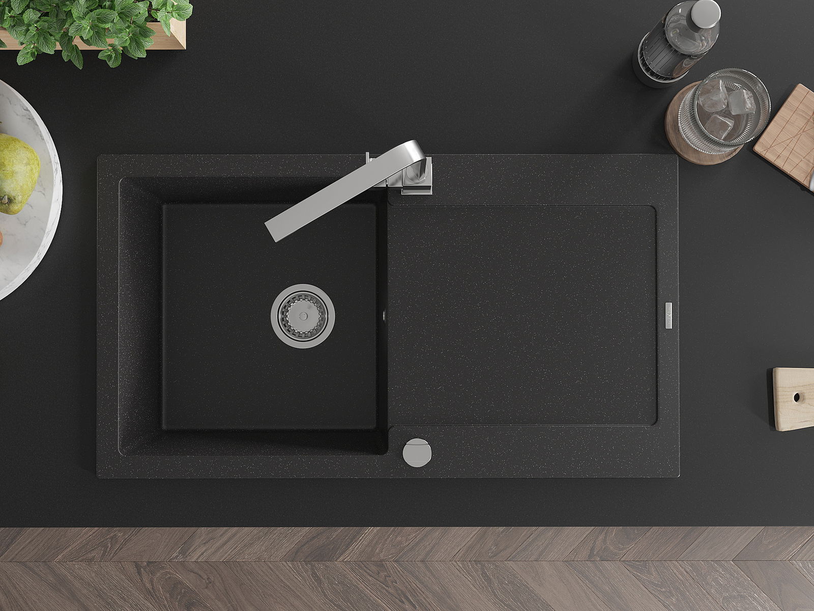 The sink is made of high quality granite. It is an elegant and, above all, practical complement to every kitchen, regardless of its style. High quality and granite durability ensure many years of use.