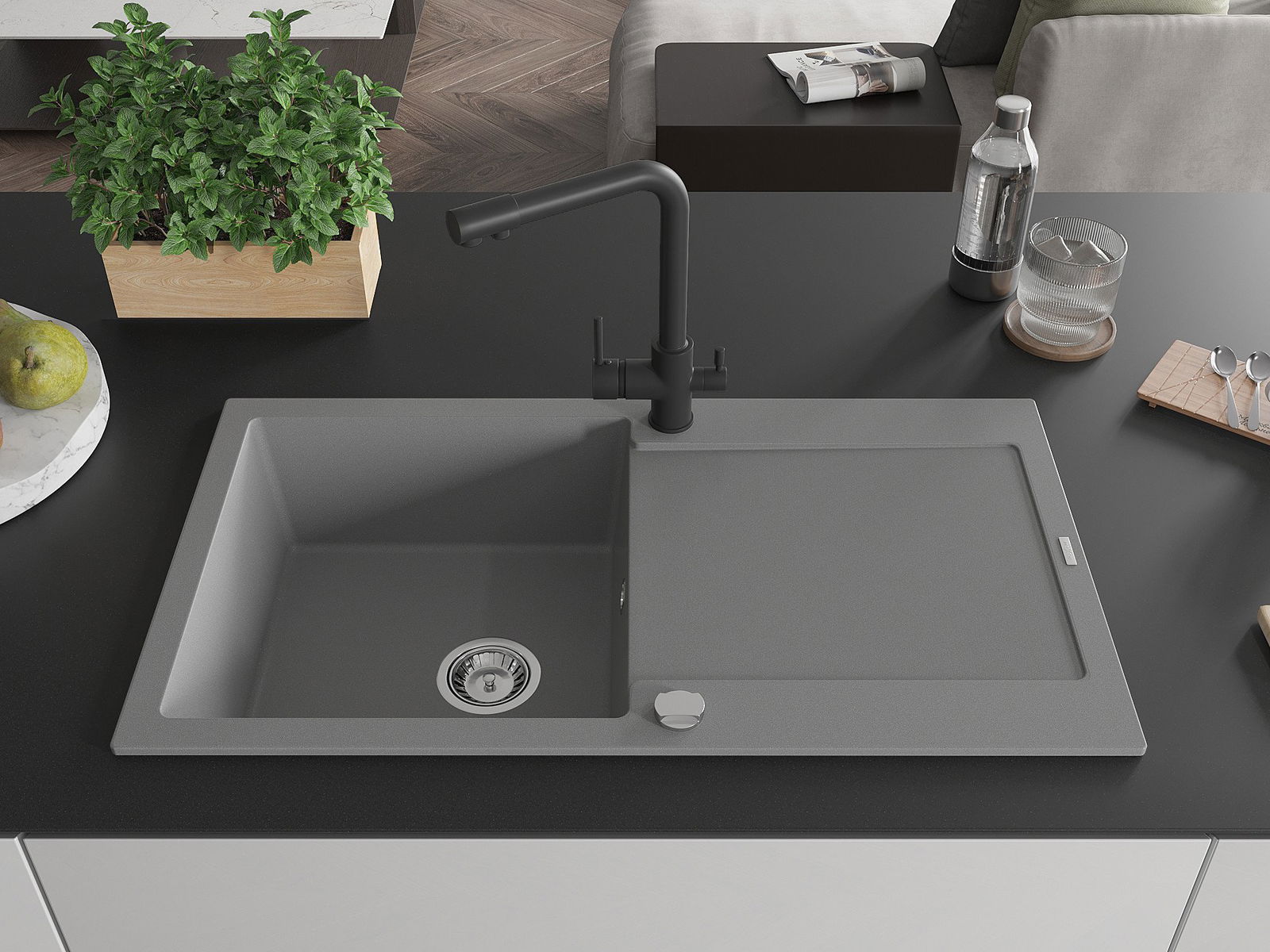 The sink is made of high quality granite. It is an elegant and, above all, practical complement to every kitchen, regardless of its style. High quality and granite durability ensure many years of use.
