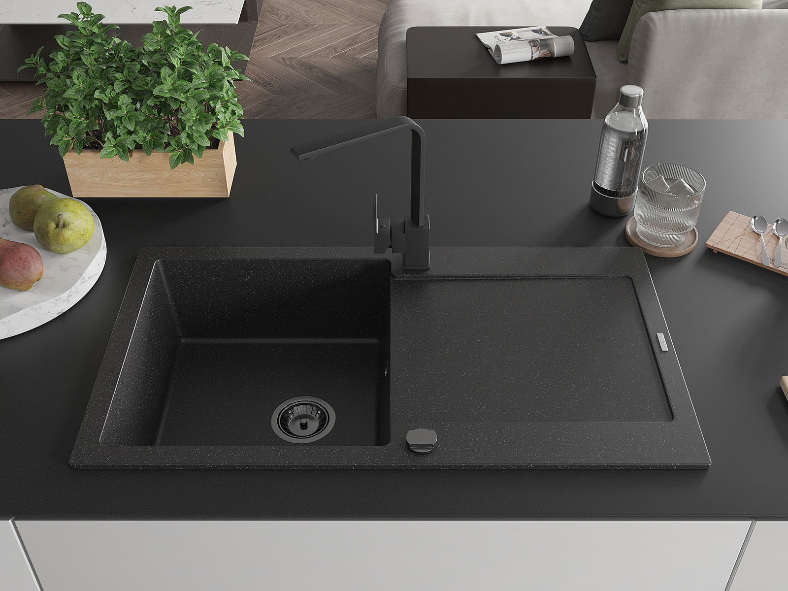 The sink is made of high quality granite. It is an elegant and, above all, practical complement to every kitchen, regardless of its style. High quality and granite durability ensure many years of use.