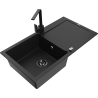 Mexen Leo 1-bowl granite sink with drainer and Rita kitchen tap, black/silver metallic - 6501-73-670300-70-B