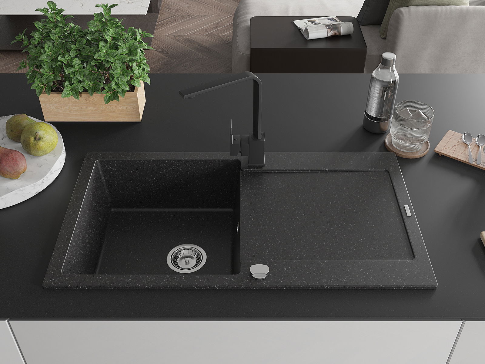 The sink is made of high quality granite. It is an elegant and, above all, practical complement to every kitchen, regardless of its style. High quality and granite durability ensure many years of use.