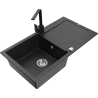 Mexen Leo 1-bowl granite sink with drainer and Rita kitchen tap, black/silver metallic - 6501-73-670300-70