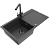 Mexen Leo 1-bowl granite sink with drainer and Duero kitchen tap, black/silver metallic - 6501-73-671600-70-B