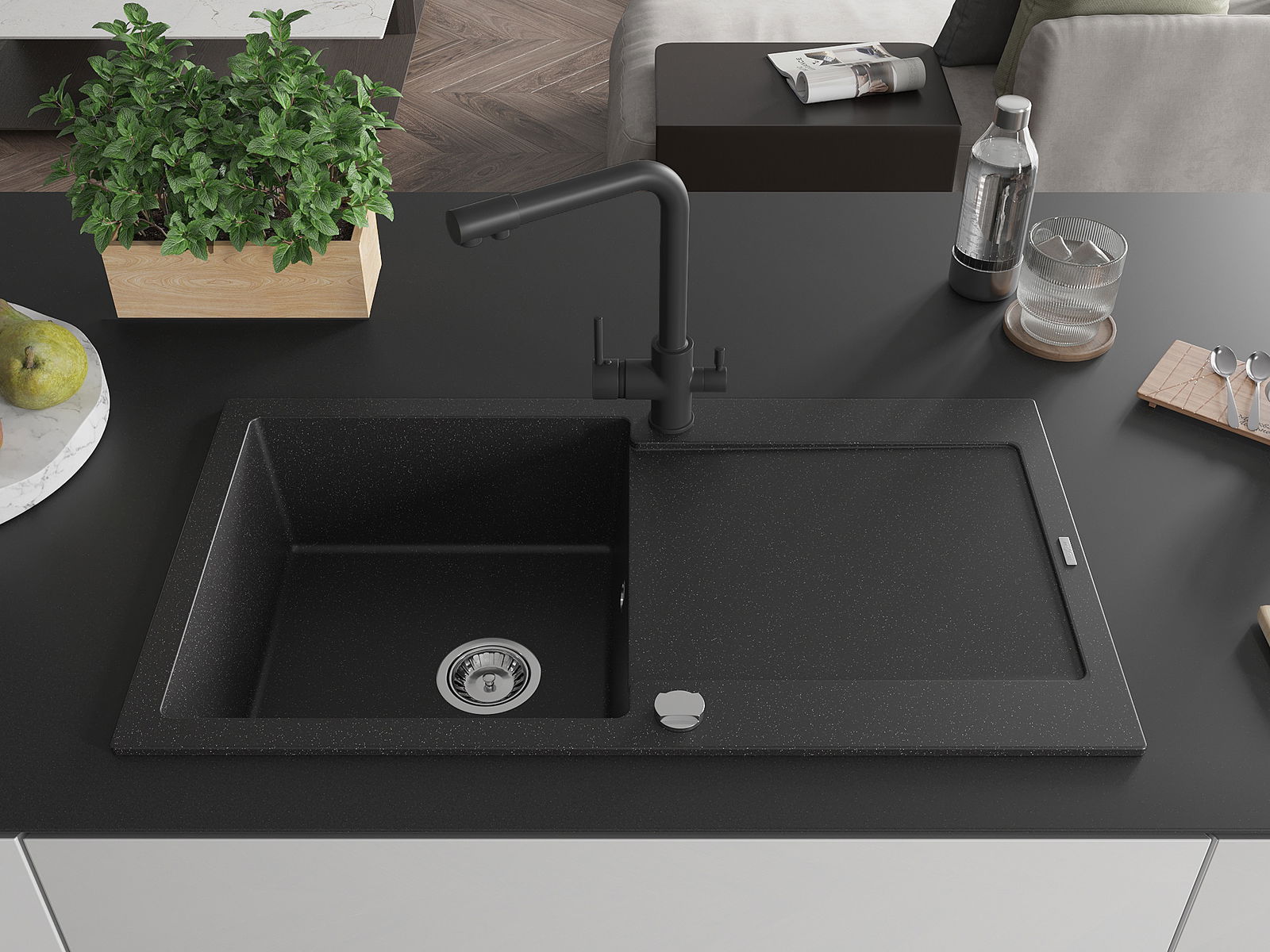 The sink is made of high quality granite. It is an elegant and, above all, practical complement to every kitchen, regardless of its style. High quality and granite durability ensure many years of use.