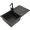 Mexen Leo 1-bowl granite sink with drainer and Rita kitchen tap, speckled black - 6501-76-670300-76