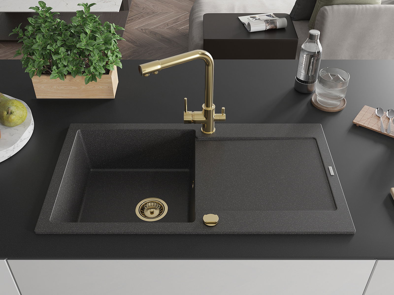 The sink is made of high quality granite. It is an elegant and, above all, practical complement to every kitchen, regardless of its style. High quality and granite durability ensure many years of use.