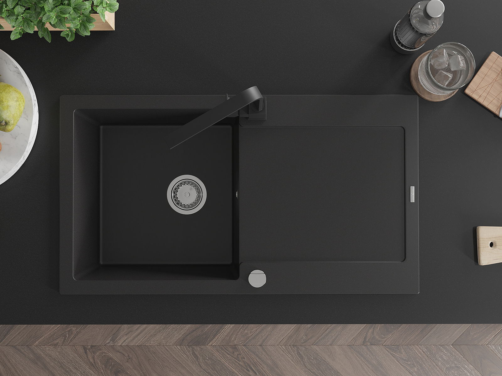 The sink is made of high quality granite. It is an elegant and, above all, practical complement to every kitchen, regardless of its style. High quality and granite durability ensure many years of use.