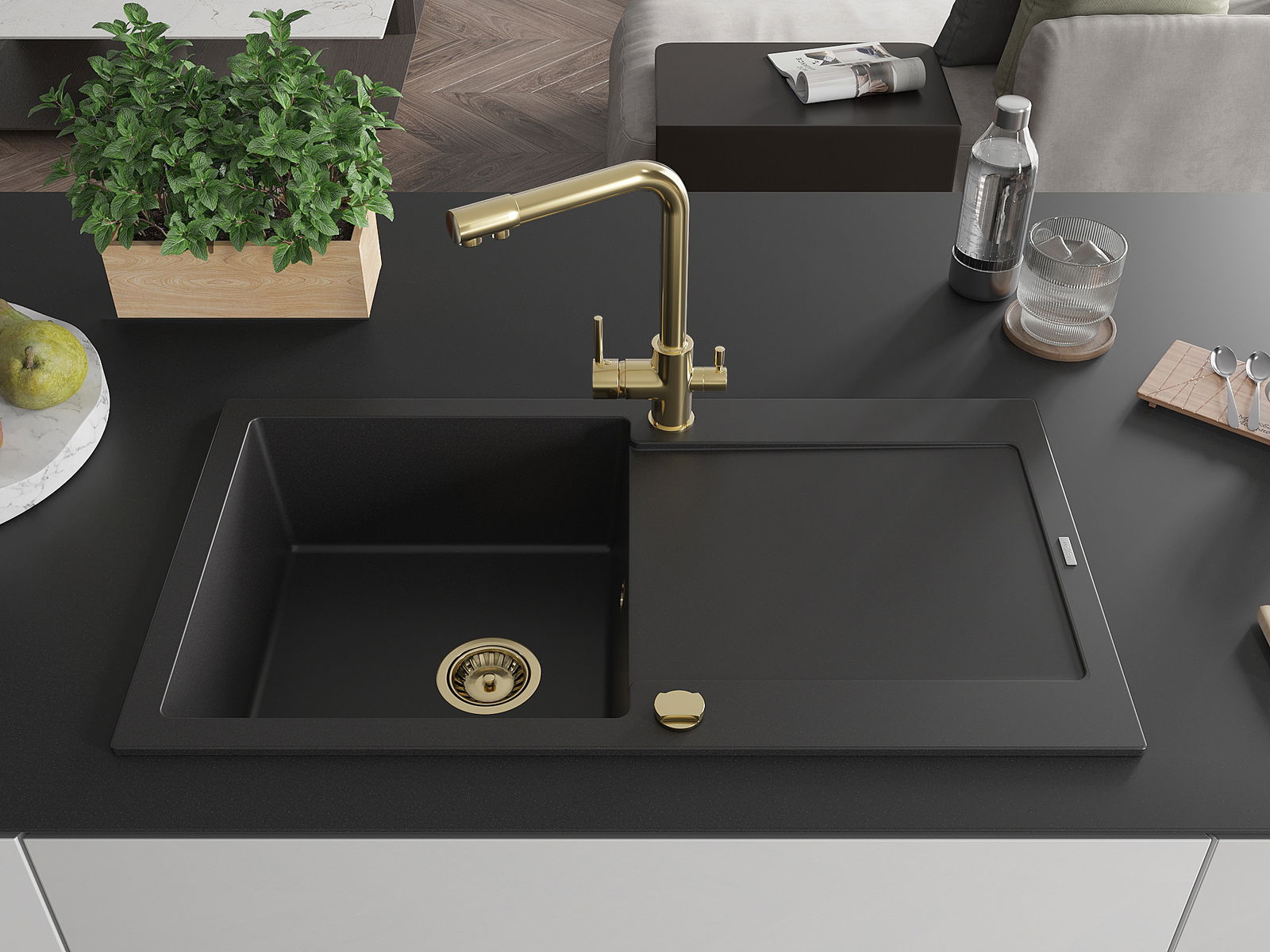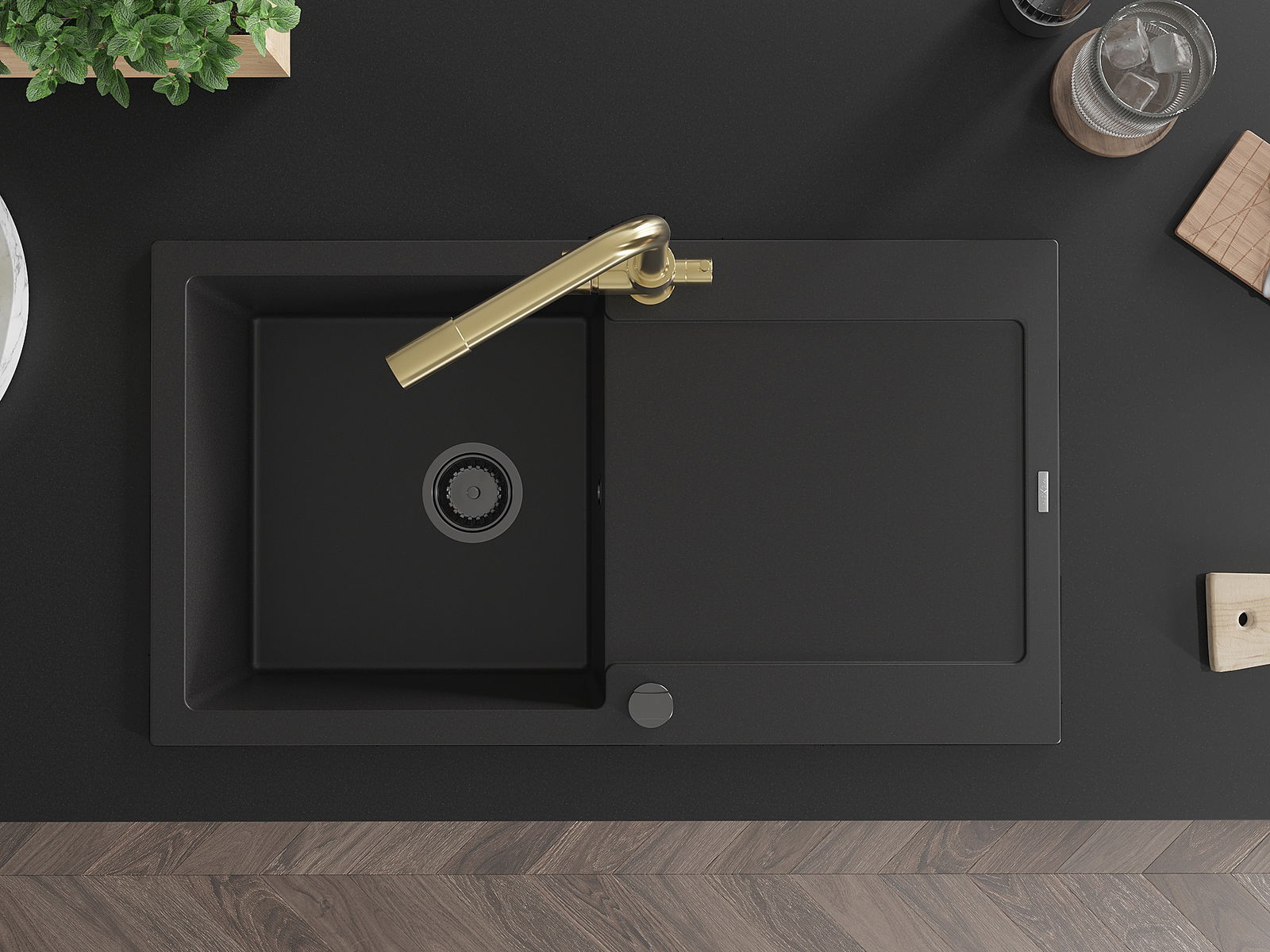 The sink is made of high quality granite. It is an elegant and, above all, practical complement to every kitchen, regardless of its style. High quality and granite durability ensure many years of use.