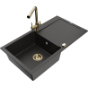 Mexen Leo 1-bowl granite sink with drainer and Duero kitchen tap, black - 6501-77-671600-50-B