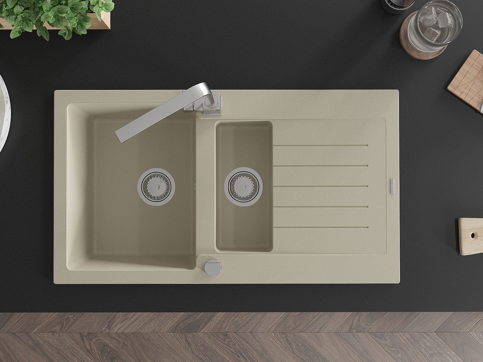 The sink is made of high quality granite. It is an elegant and, above all, practical complement to every kitchen, regardless of its style. High quality and granite durability ensure many years of use.