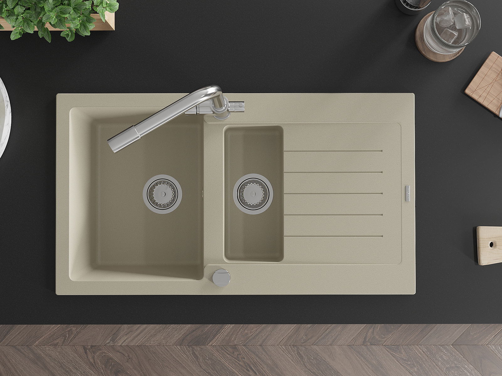 The sink is made of high quality granite. It is an elegant and, above all, practical complement to every kitchen, regardless of its style. High quality and granite durability ensure many years of use.