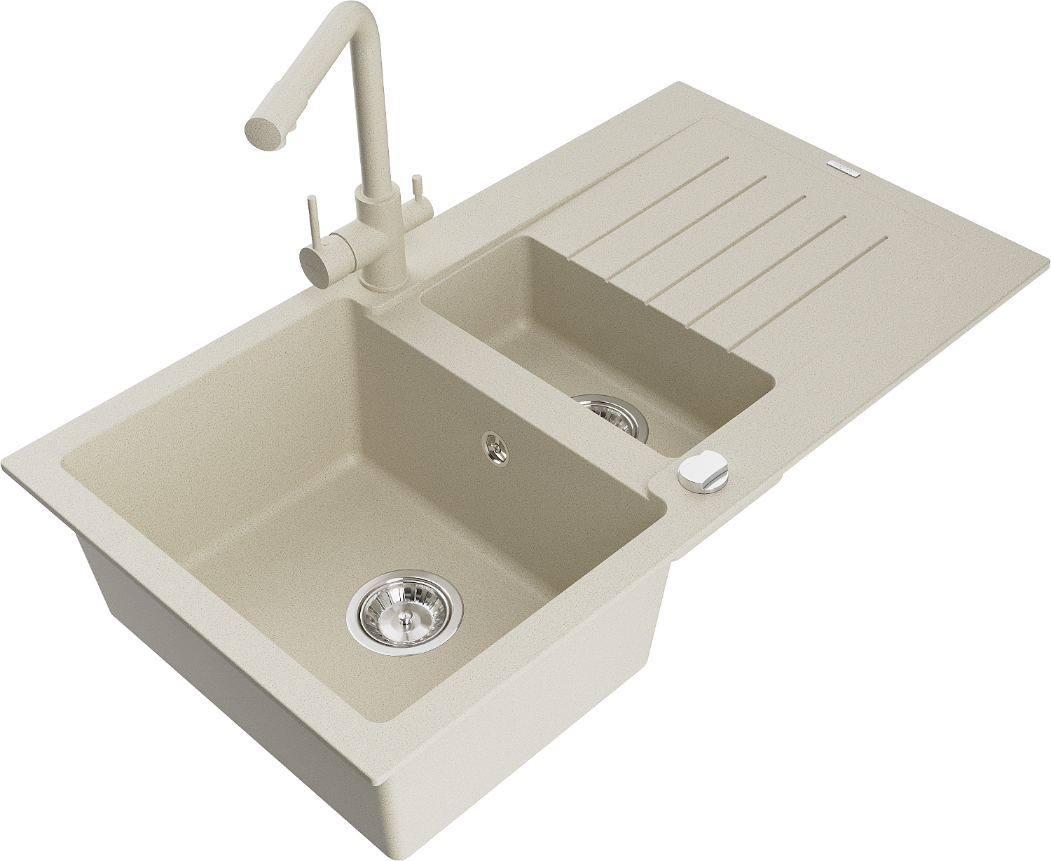 Choosing a sink with a draining board is a practical solution that allows you to set aside washed dishes or vegetables and fruits. The draining board makes daily cooking easier and helps maintain order in the kitchen.