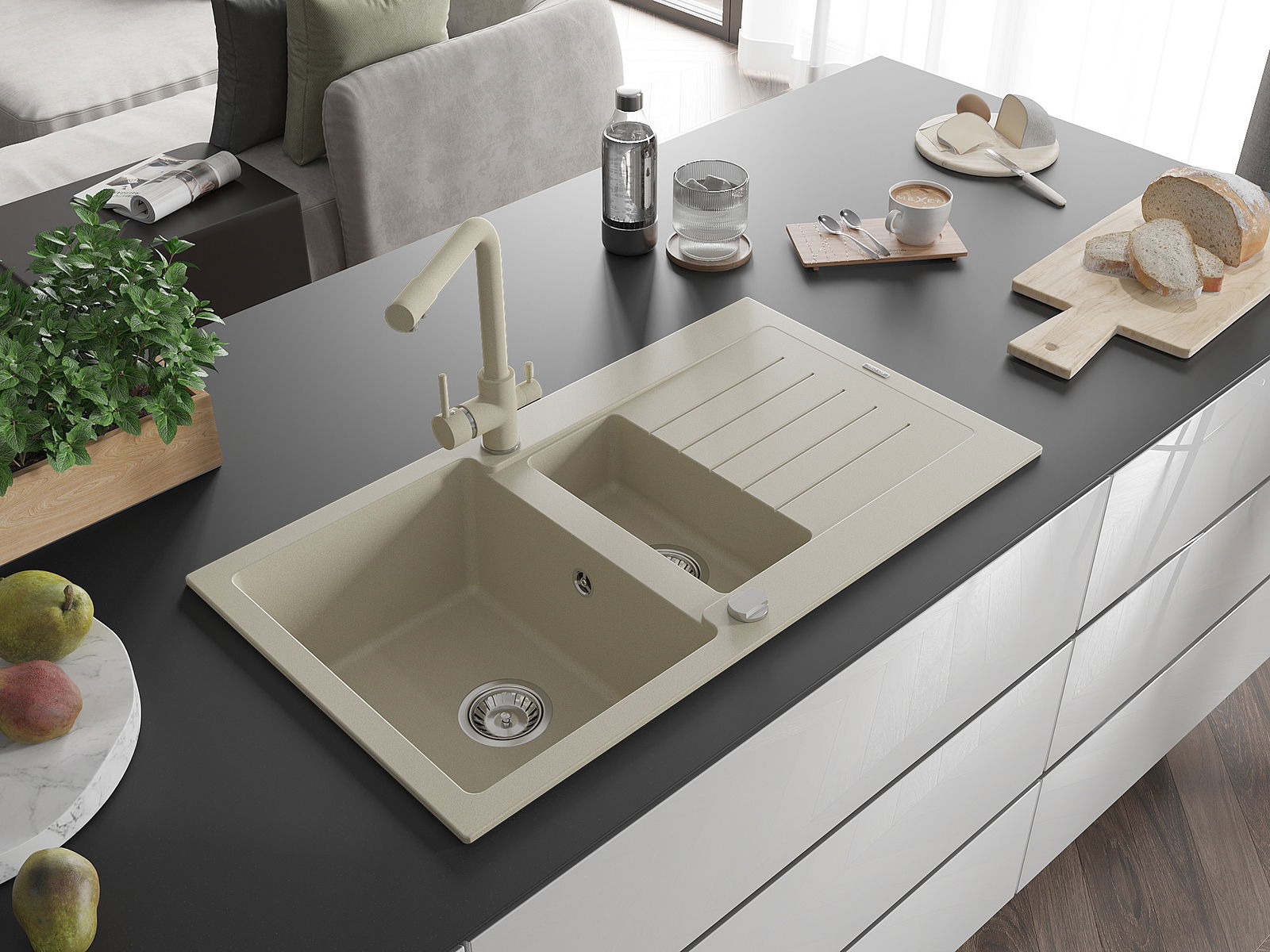 The surface of the sink is resistant to stains and discolouration, making it easy to maintain cleanliness and retain its colour for a long time of use. An aesthetic and practical addition to any kitchen.
