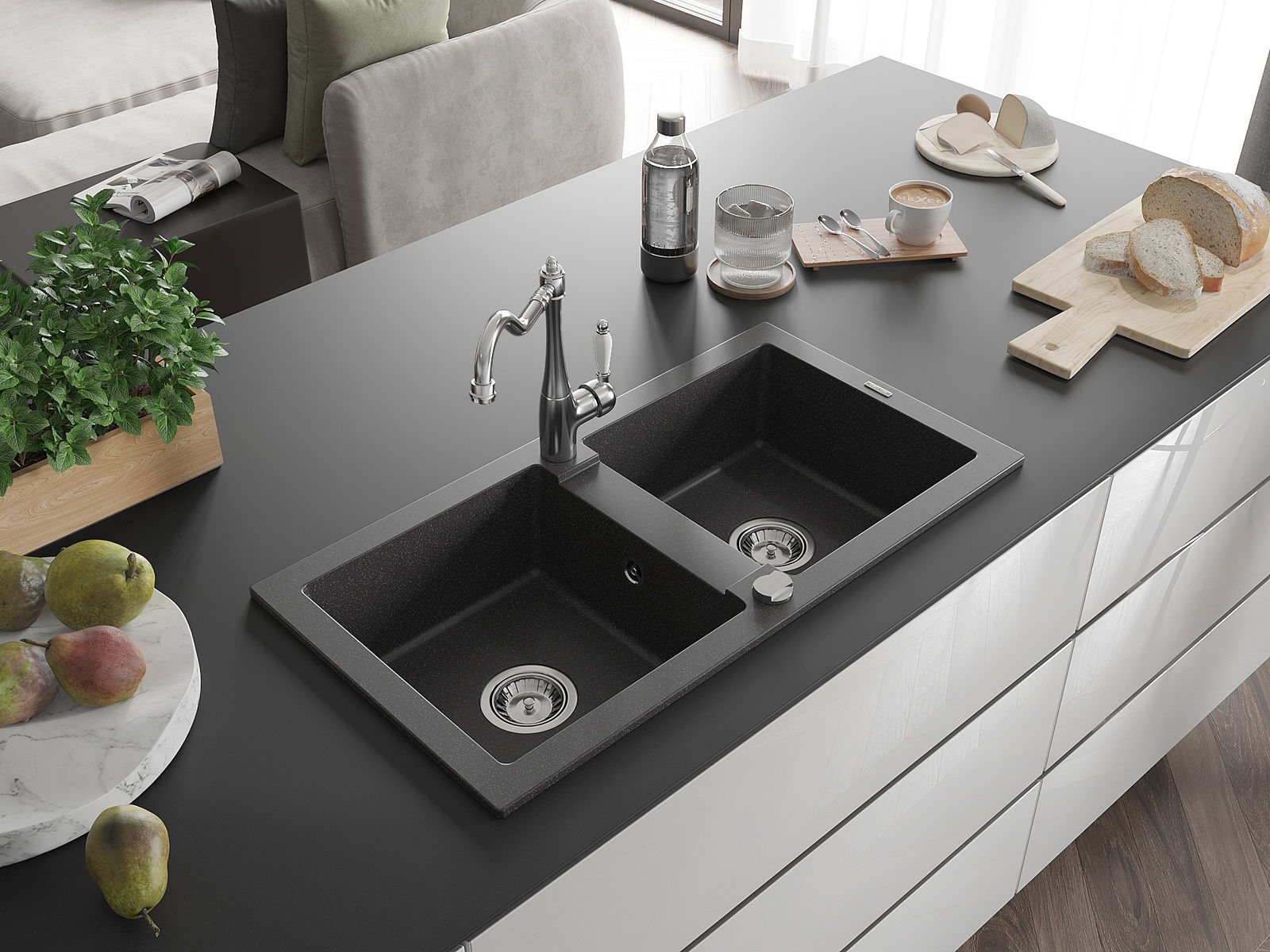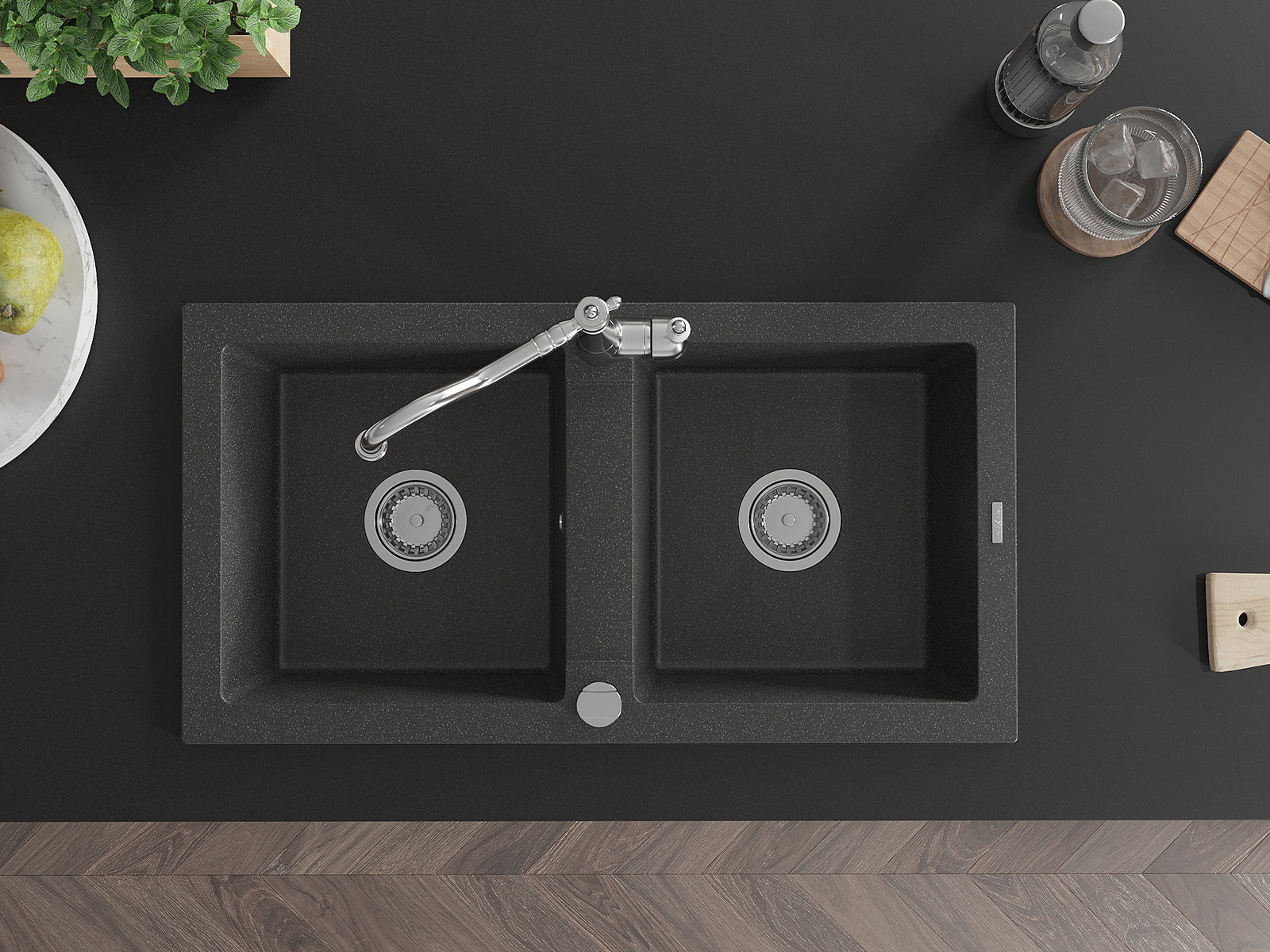 The sink is made of high quality granite. It is an elegant and, above all, practical complement to every kitchen, regardless of its style. High quality and granite durability ensure many years of use.