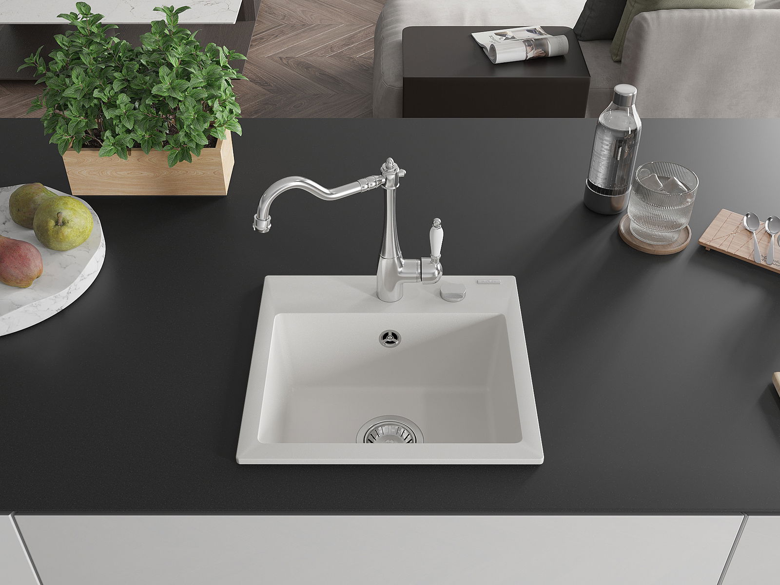 The sink is made of high quality granite. It is an elegant and, above all, practical complement to every kitchen, regardless of its style. High quality and granite durability ensure many years of use.