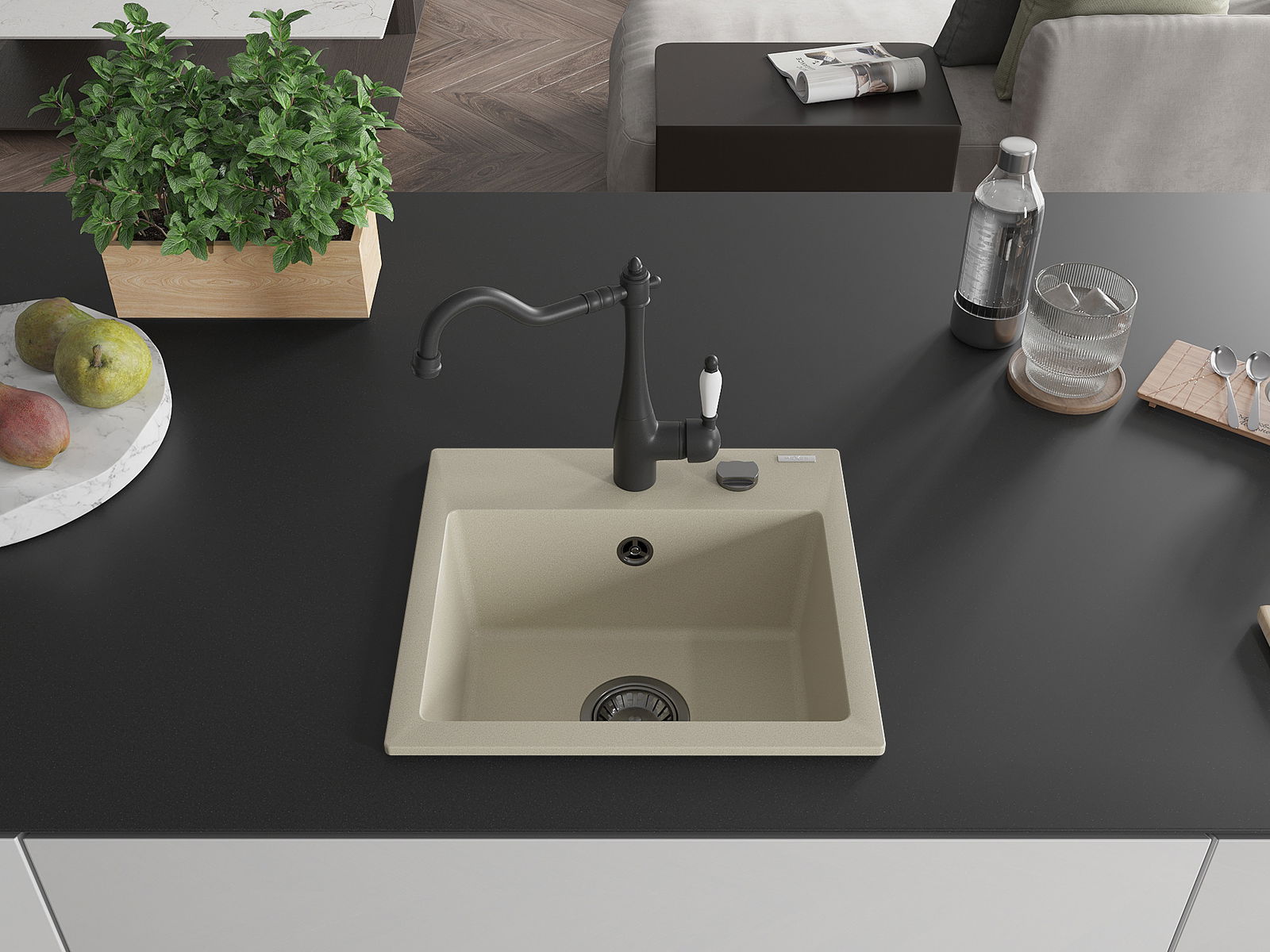 The surface of the sink is resistant to stains and discoloration, thanks to which it is easy to clean and retains its color for a long time. Aesthetic and practically complementing every kitchen.