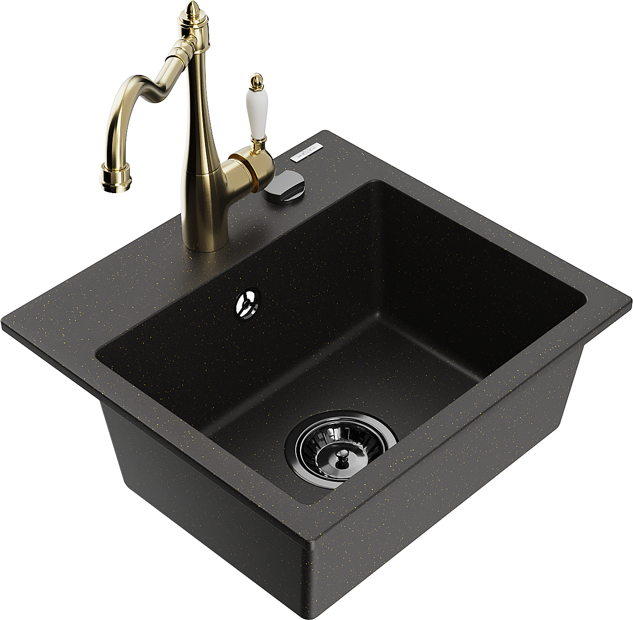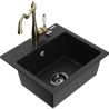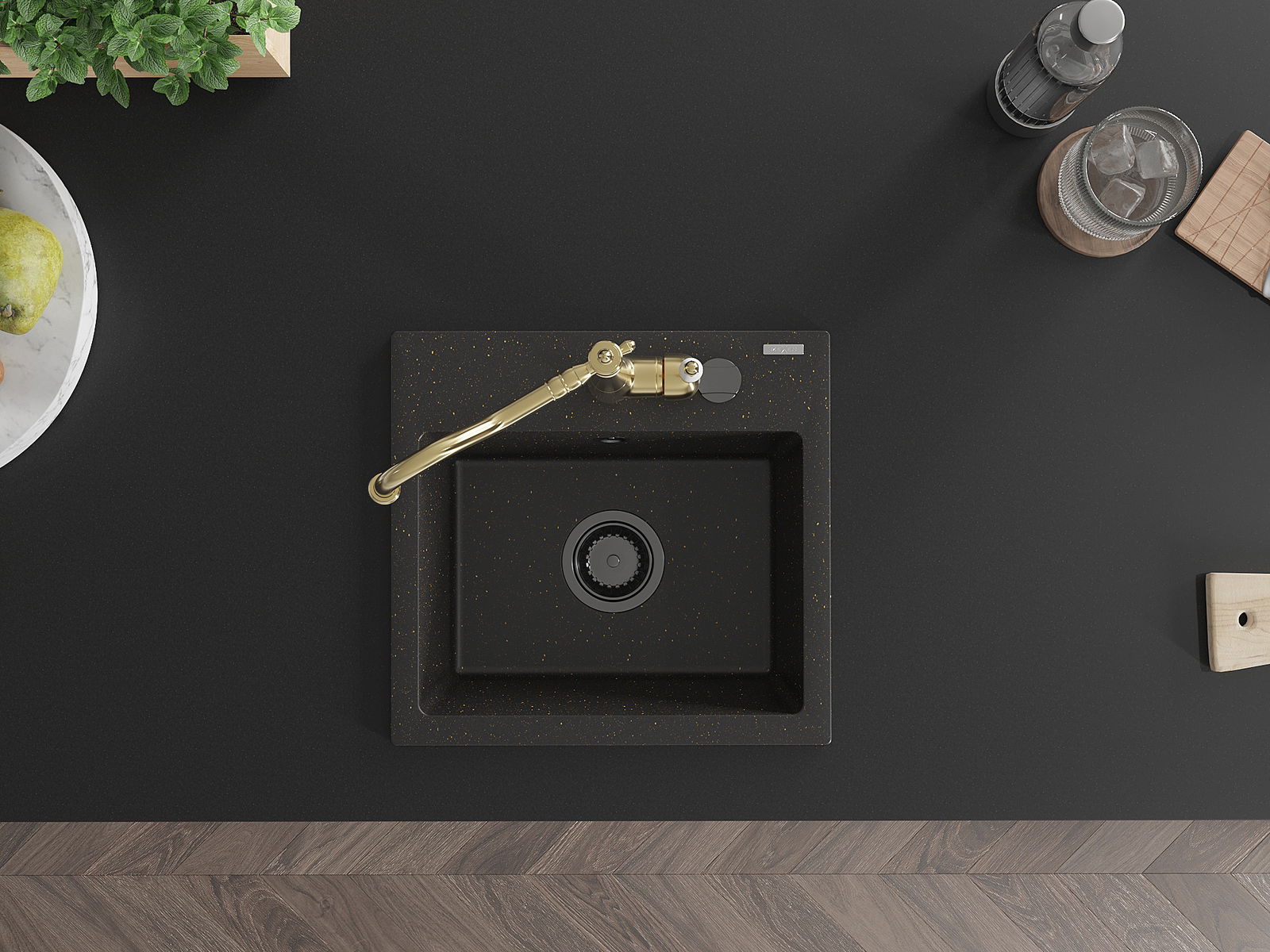 Mexen Milo granite kitchen sink 1-bowl with Carla kitchen tap, black/gold metallic - 6505-75-670700-50-B
