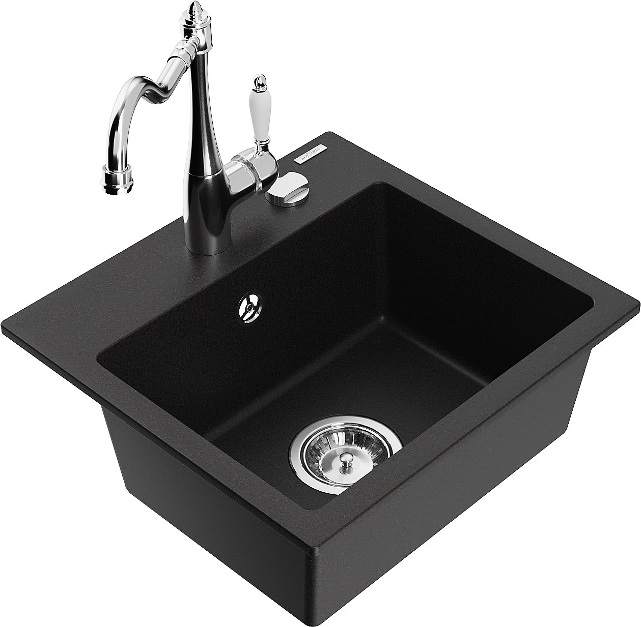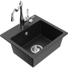 Mexen Milo granite kitchen sink 1-bowl with Carla tap, black - 6505-77-670700-00