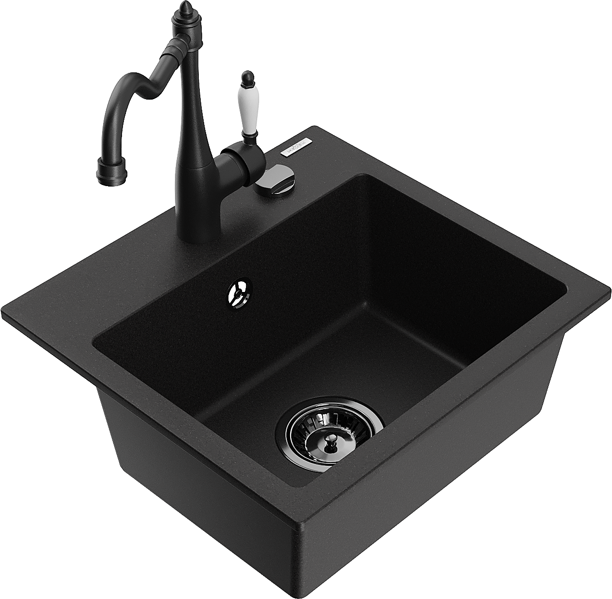 Mexen Milo granite sink 1-bowl with Carla kitchen tap, black - 6505-77-670700-70-B
