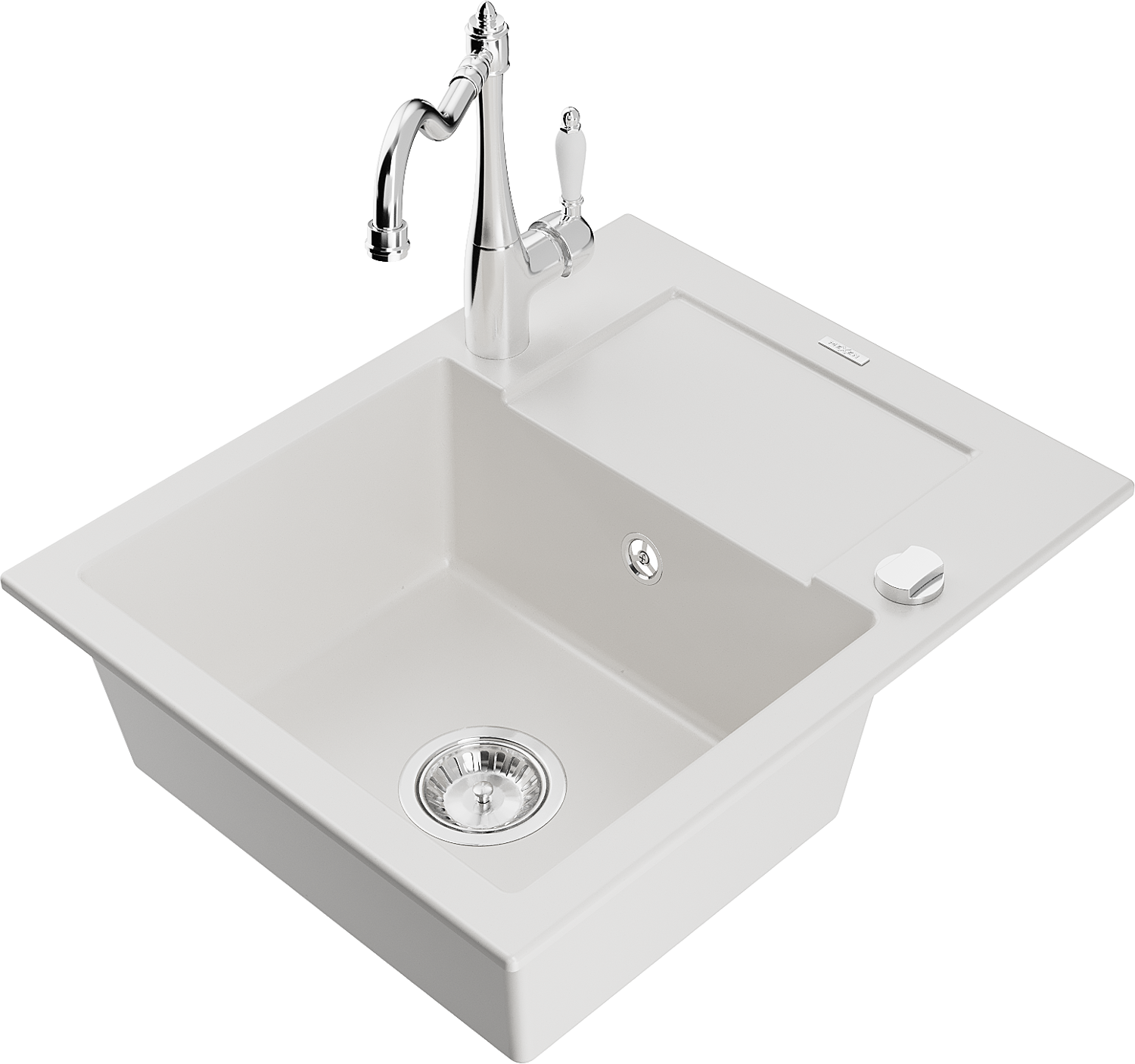 Mexen Enzo granite sink 1-bowl with drainer and Carla kitchen tap, white - 6506-20-670700-00