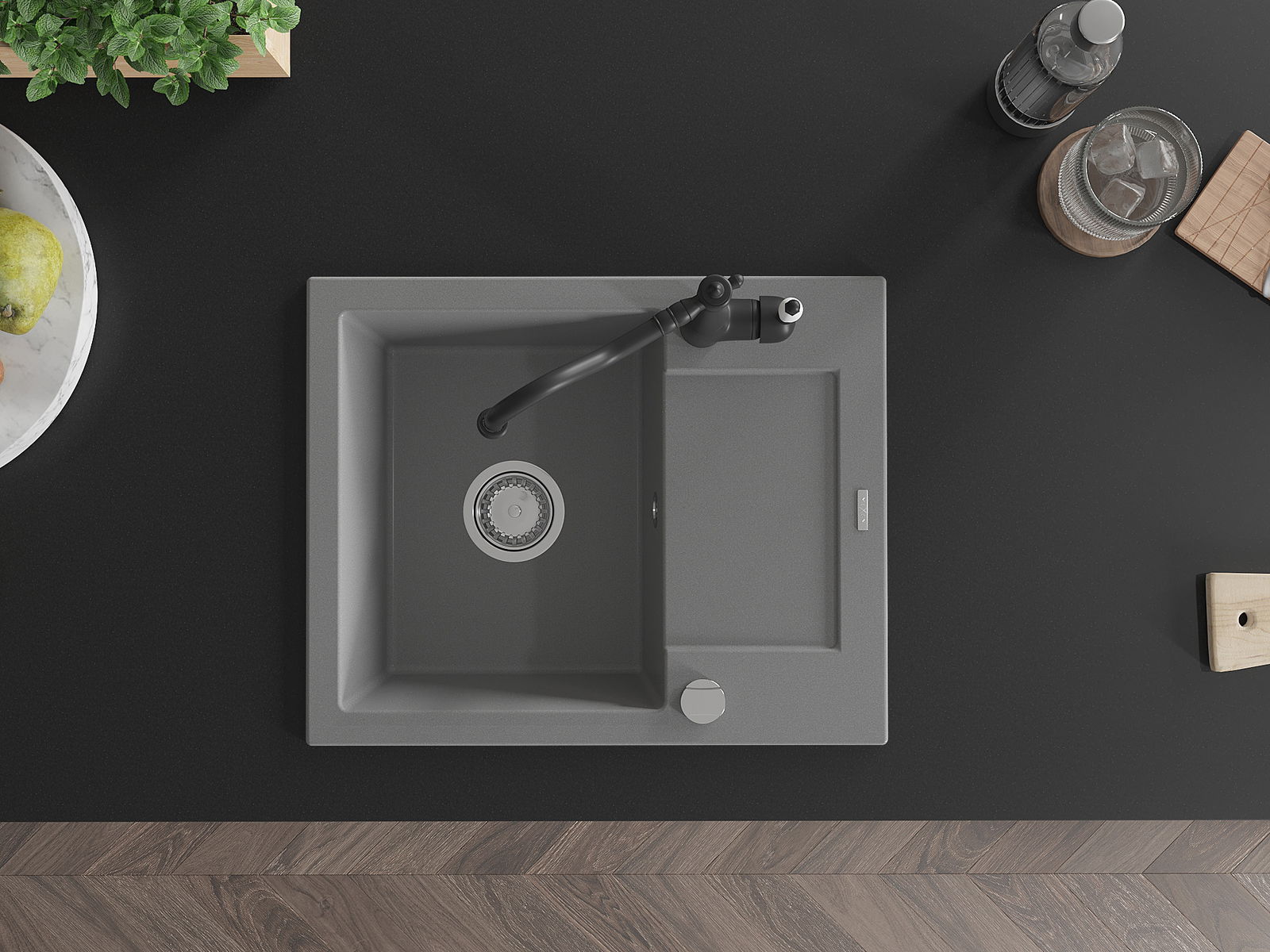 The sink is made of high quality granite. It is an elegant and, above all, practical complement to every kitchen, regardless of its style. High quality and granite durability ensure many years of use.