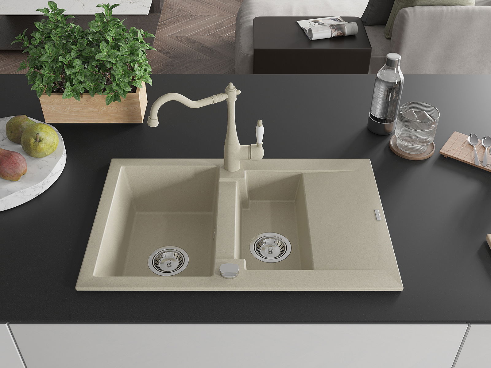 The sink is made of high quality granite. It is an elegant and, above all, practical complement to every kitchen, regardless of its style. High quality and granite durability ensure many years of use.