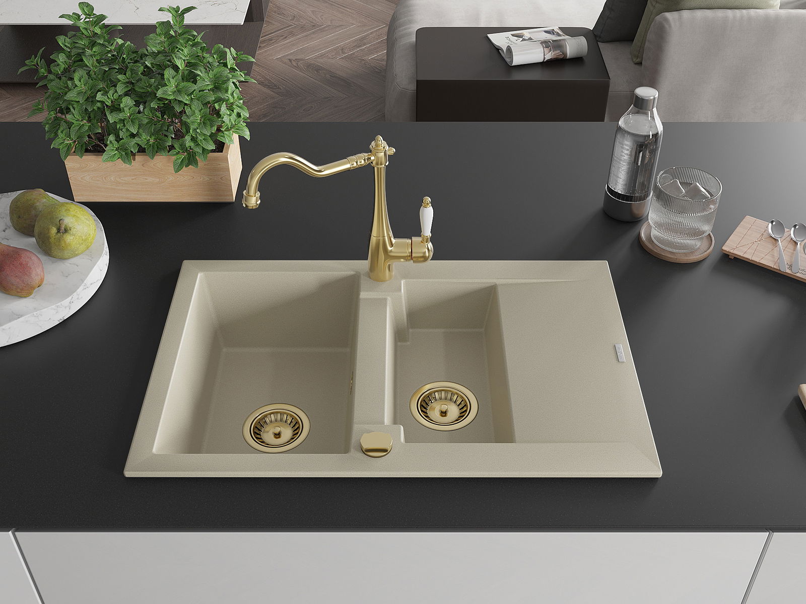 The sink is made of high quality granite. It is an elegant and, above all, practical complement to every kitchen, regardless of its style. High quality and granite durability ensure many years of use.