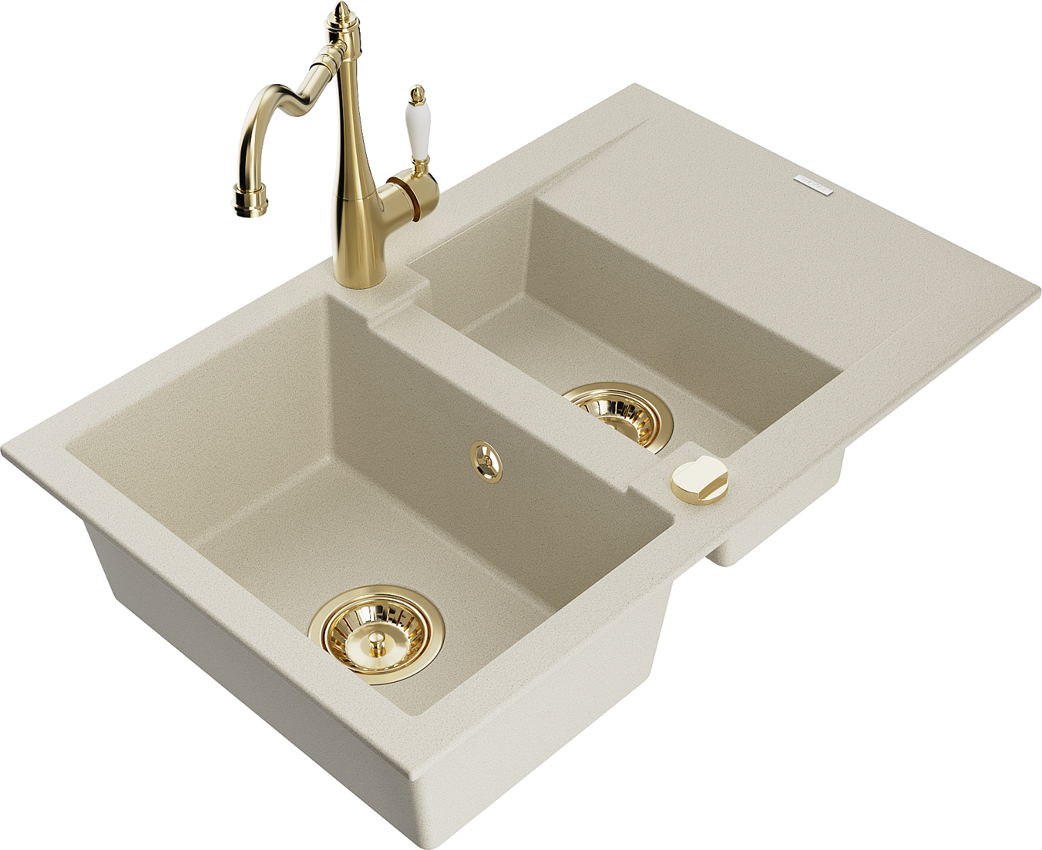 Mexen Gaspar granite sink 1.5-bowl with drainer and Carla kitchen tap, beige - 6507-69-670700-50