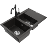 Mexen Gaspar 1.5-bowl granite sink with drainer and Carla kitchen tap black/silver metallic - 6507-73-670700-70