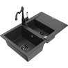 Mexen Gaspar granite sink 1.5-bowl with drainer and Carla kitchen tap, black/silver - 6507-73-670700-70-B