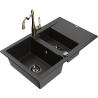 Mexen Gaspar 1.5-bowl granite sink with drainer and kitchen tap Carla, black - 6507-77-670700-50-B