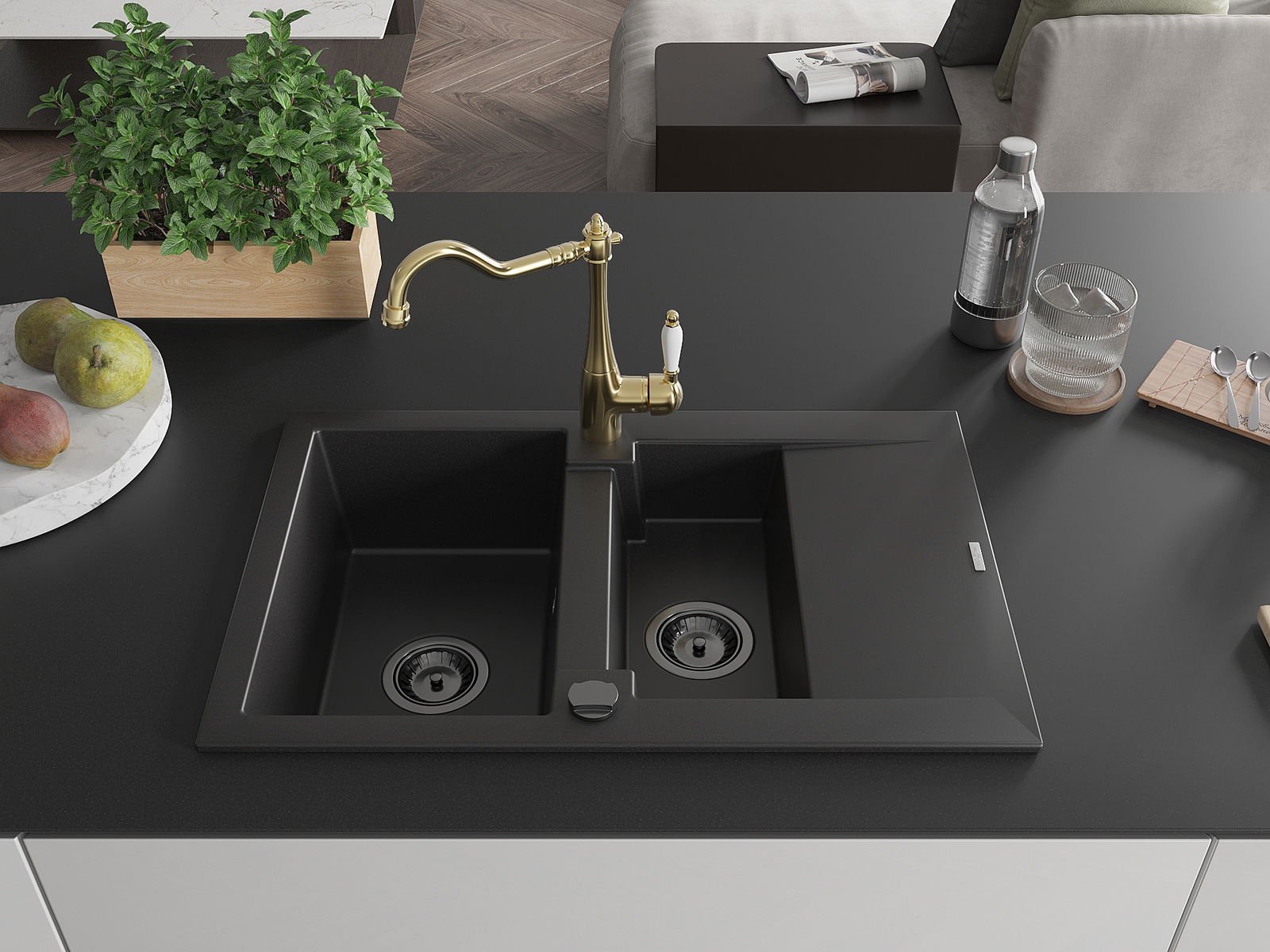 The sink is made of high quality granite. It is an elegant and, above all, practical complement to every kitchen, regardless of its style. High quality and granite durability ensure many years of use.