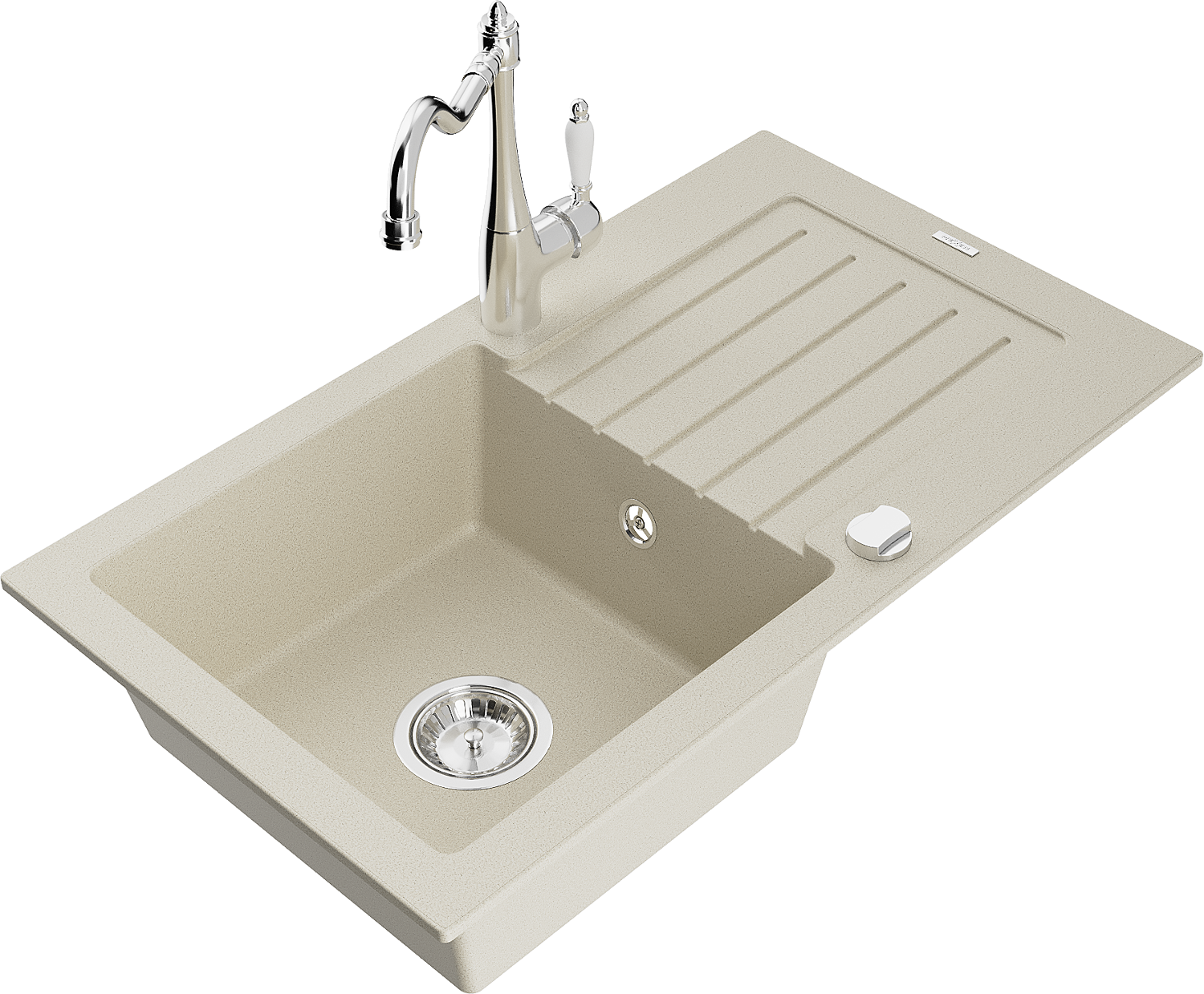 Mexen Pablo 1-bowl granite sink with drainer and Carla kitchen tap, beige - 6510-69-670700-00