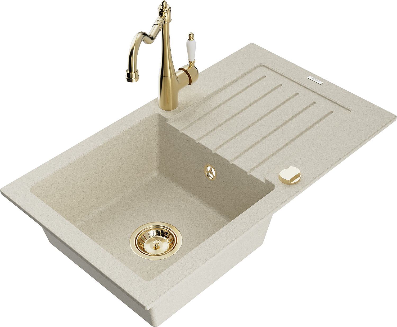 Mexen Pablo 1-bowl granite kitchen sink with drainer and Carla tap, beige - 6510-69-670700-50