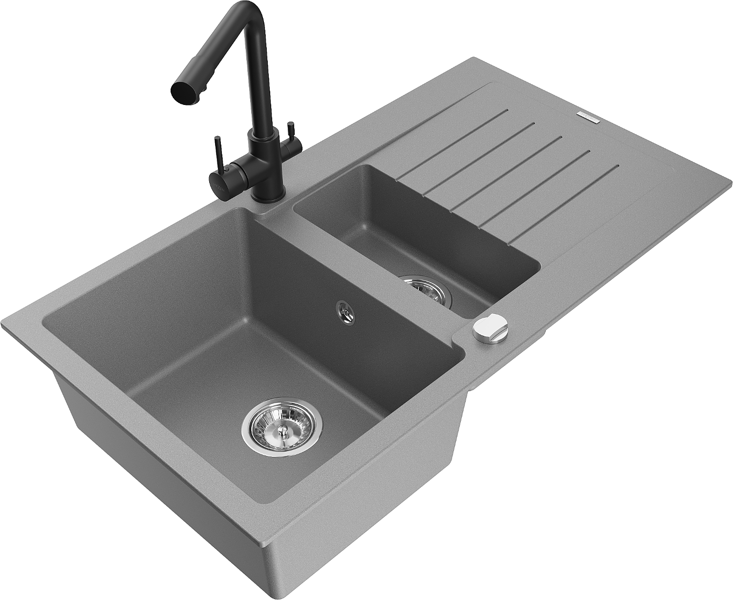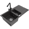 Mexen Matias granite sink 1.5-bowl with drainer and Duero kitchen tap, grey - 6502-71-671600-70