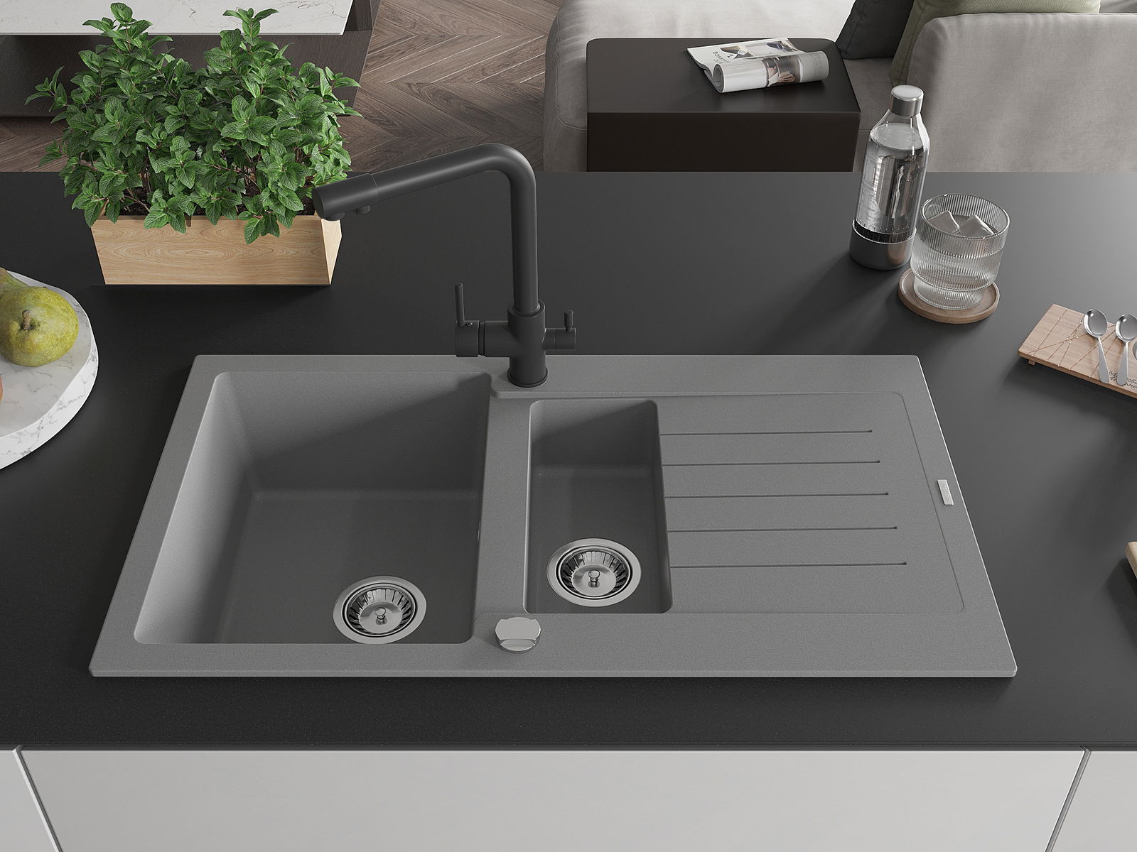 The sink is made of high quality granite. It is an elegant and, above all, practical complement to every kitchen, regardless of its style. High quality and granite durability ensure many years of use.