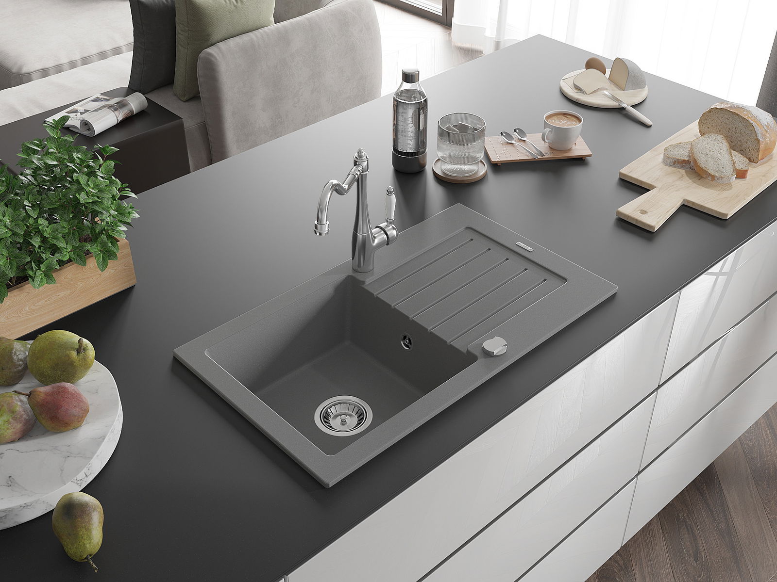 The surface of the sink is resistant to stains and discoloration, thanks to which it is easy to clean and retains its color for a long time. Aesthetic and practically complementing every kitchen.