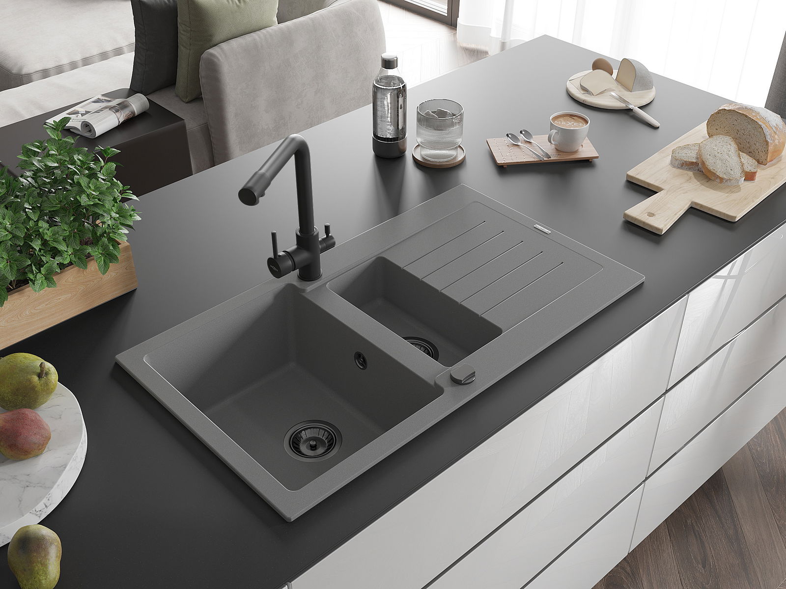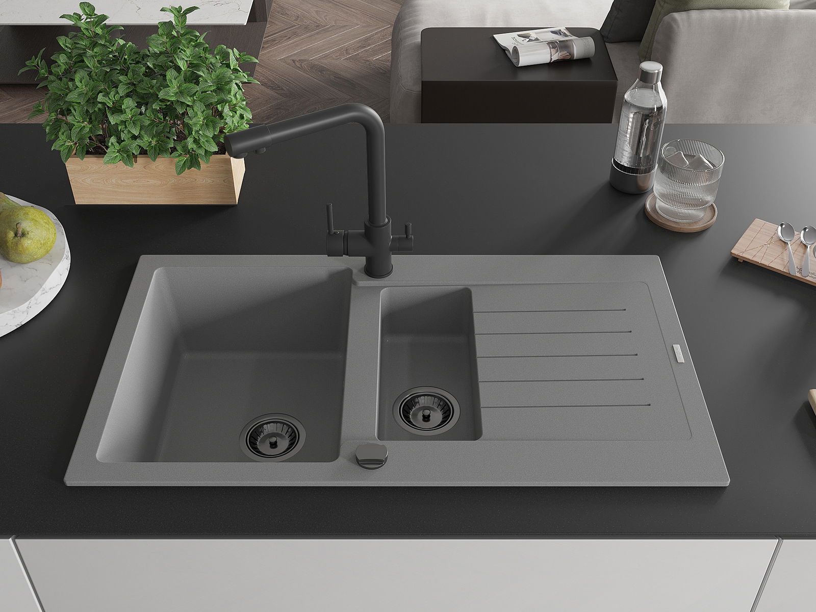 The sink is made of high quality granite. It is an elegant and, above all, practical complement to every kitchen, regardless of its style. High quality and granite durability ensure many years of use.