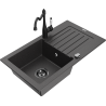 Mexen Pablo 1-bowl granite sink with drainer and Carla kitchen tap, grey - 6510-71-670700-70-B