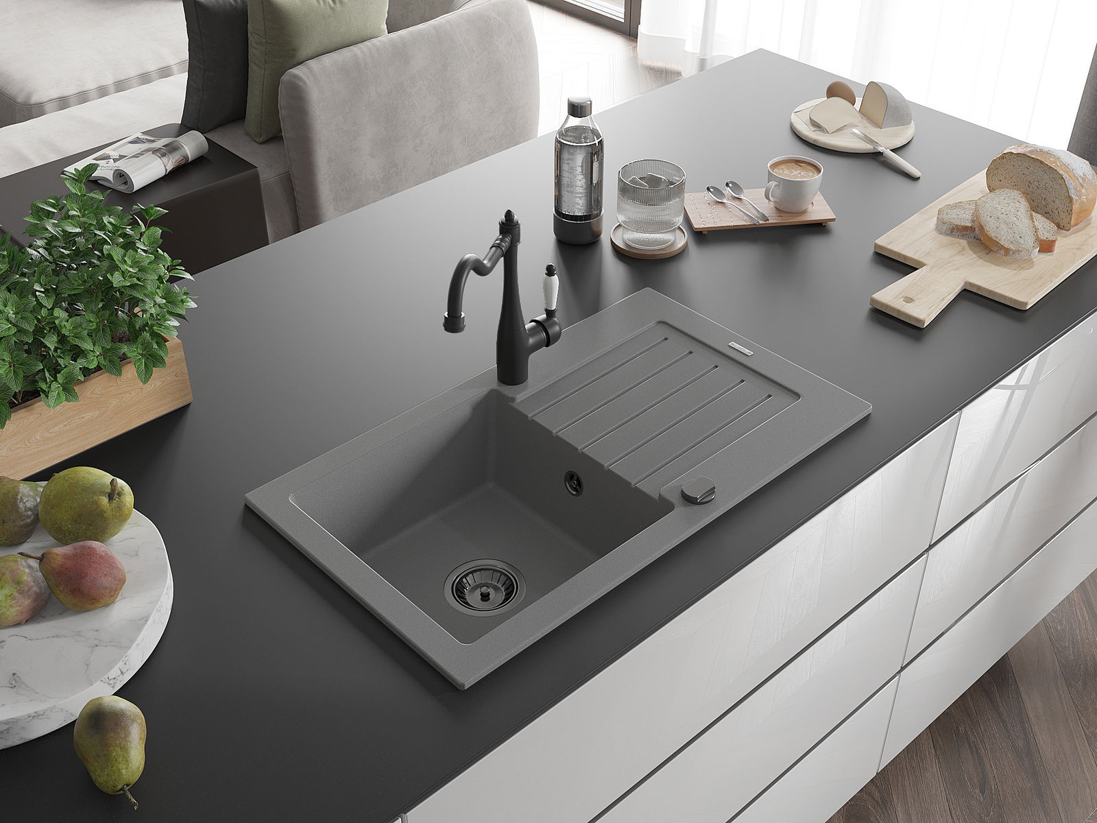 The surface of the sink is resistant to stains and discoloration, thanks to which it is easy to clean and retains its color for a long time. Aesthetic and practically complementing every kitchen.