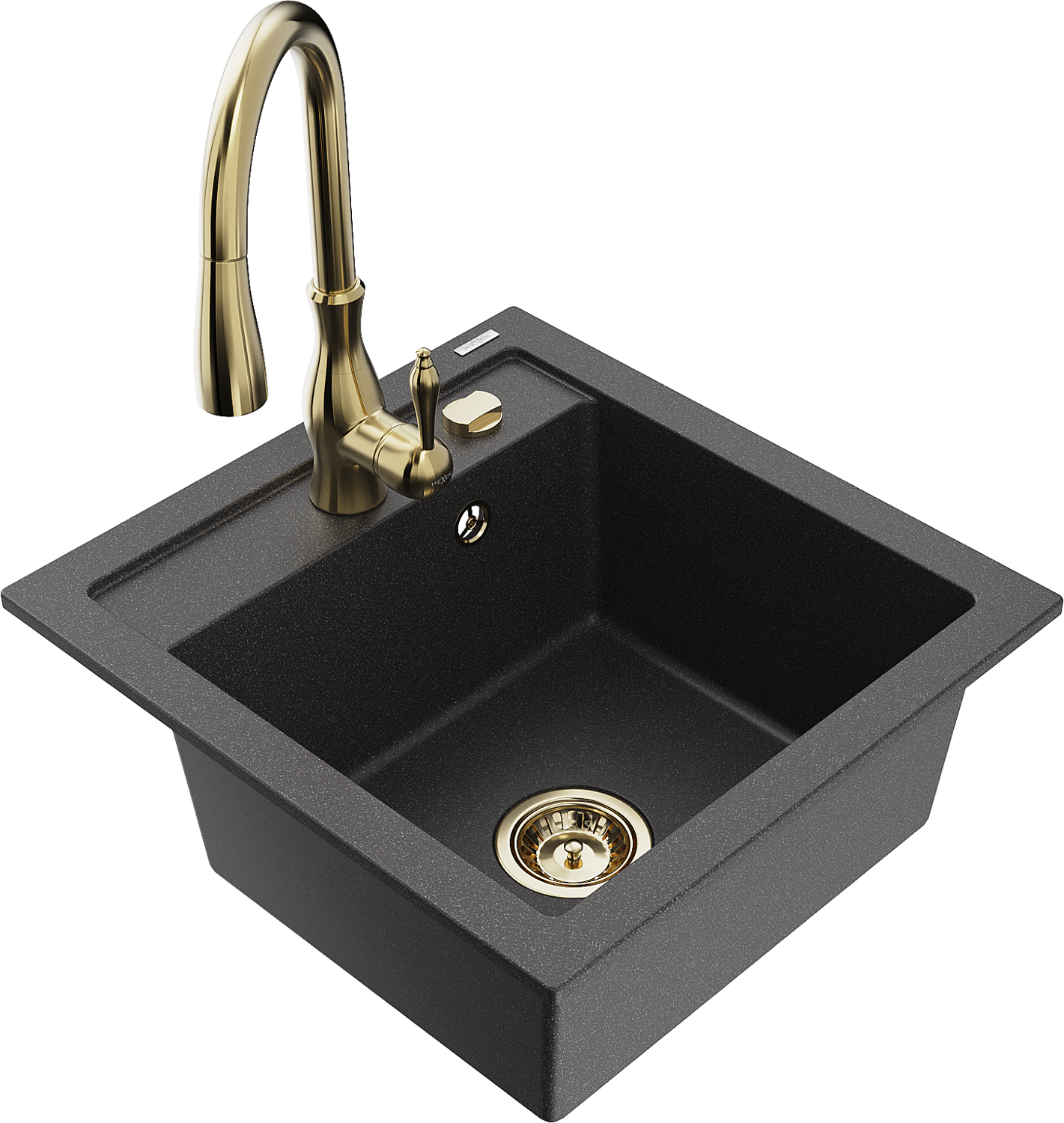 Mexen Vito 1-bowl granite sink with Savita kitchen tap, speckled black - 6503-76-672601-50