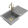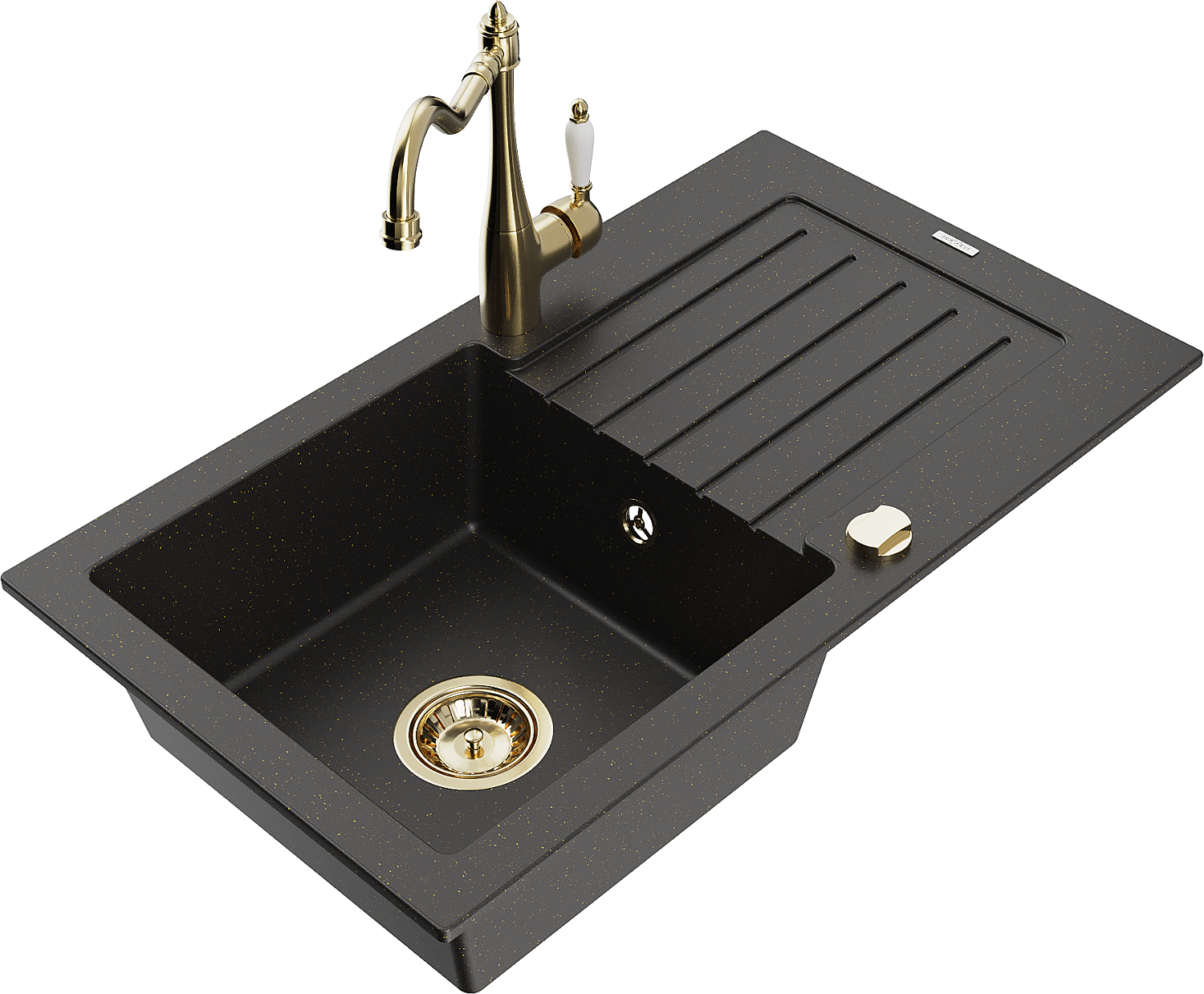 Mexen Pablo granite sink 1-bowl with drainer and kitchen tap Carla, black/golden metallic - 6510-75-670700-50