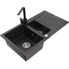 Mexen Matias granite sink 1.5-bowl with drainer and Rita kitchen tap, grey - 6502-71-670300-71