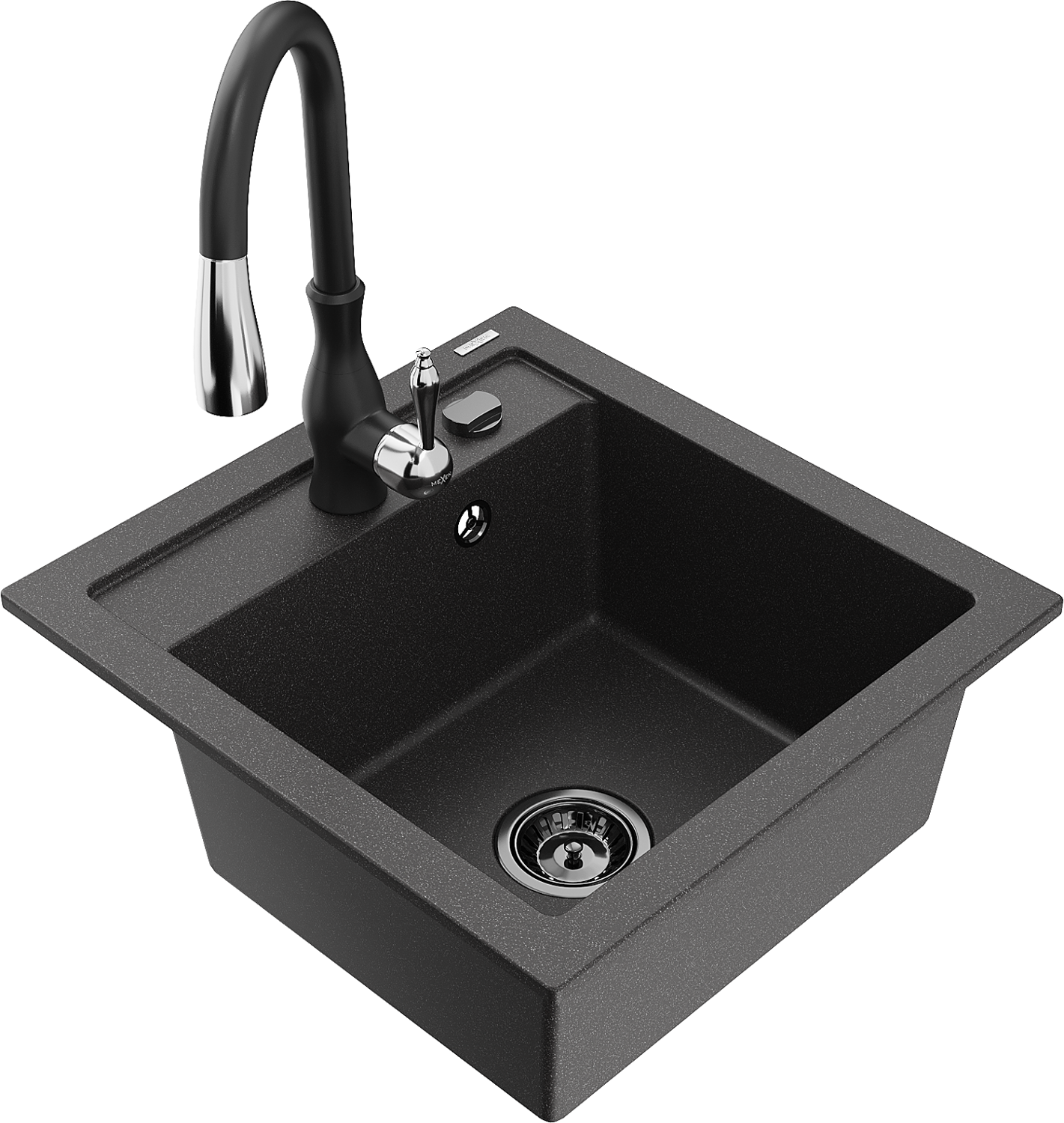 Mexen Vito granite kitchen sink 1-bowl with Savita kitchen tap, black speckled - 6503-76-672601-70-B