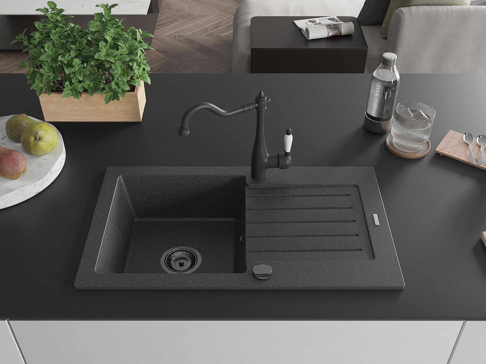 The sink is made of high quality granite. It is an elegant and, above all, practical complement to every kitchen, regardless of its style. High quality and granite durability ensure many years of use.