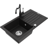 Mexen Pablo 1-compartment granite sink with a drip tray and kitchen mixer tap Carla, spotted black - 6510-76-670700-76