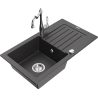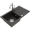 Mexen Pablo granite sink 1-bowl with drainer and Carla kitchen tap, black - 6510-77-670700-00